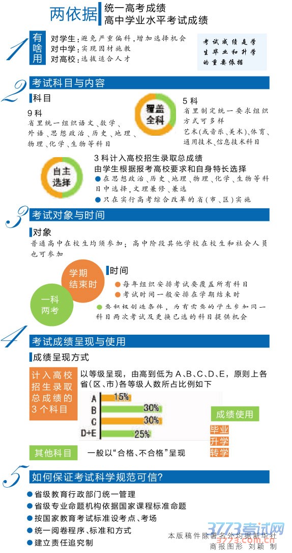 昨日,教育部发布《关于普通高中学业水平考试的实施意见》、《关于加强和改进普通高中学生综合素质评价的意见》,这是《国务院关于深化考试招生制度改革的实施意见》的重要配套政策。