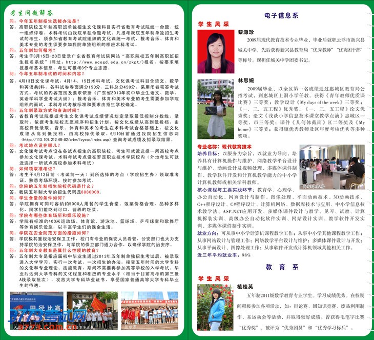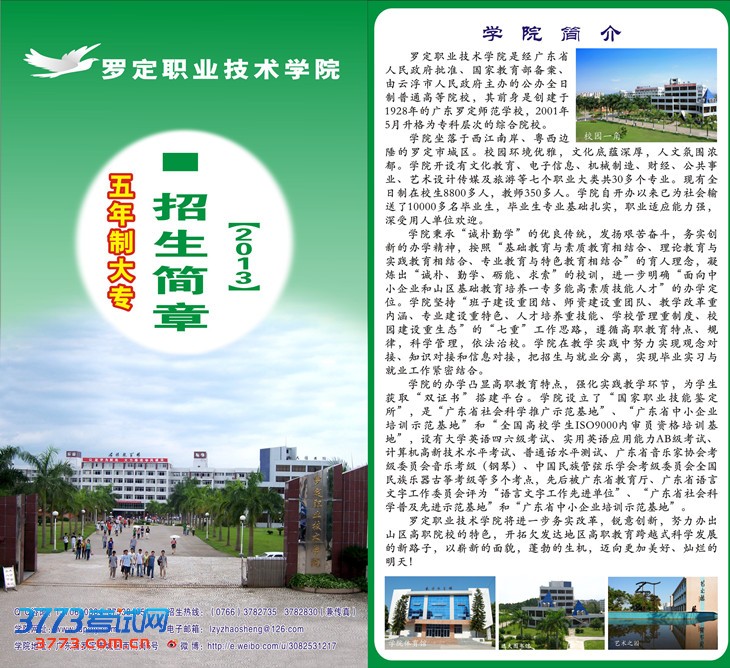 罗定职业技术学院2013年五年一贯制大专班招生简章