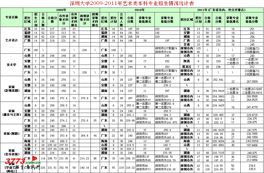 [图文]深圳大学2009-2011历年艺术类专业录取分数线