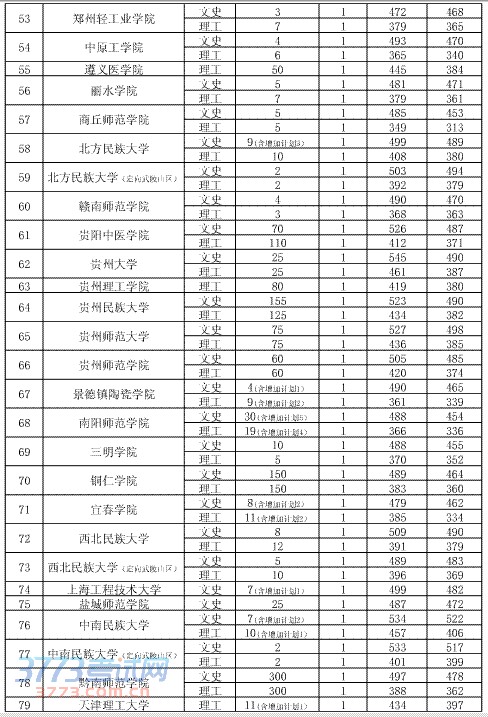 [组图]2014年7月27日贵州二本院校预科录取分数线