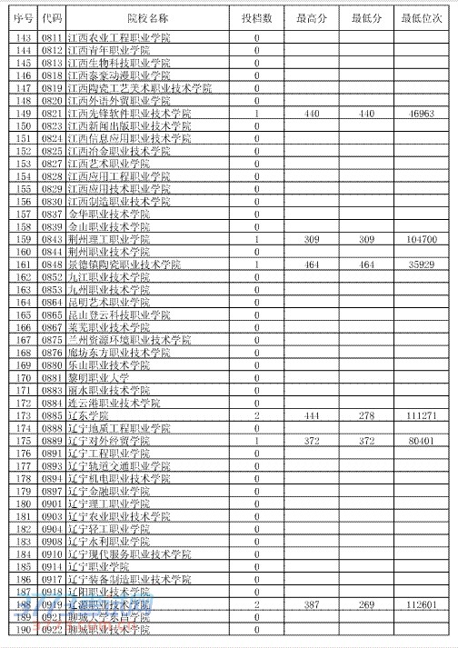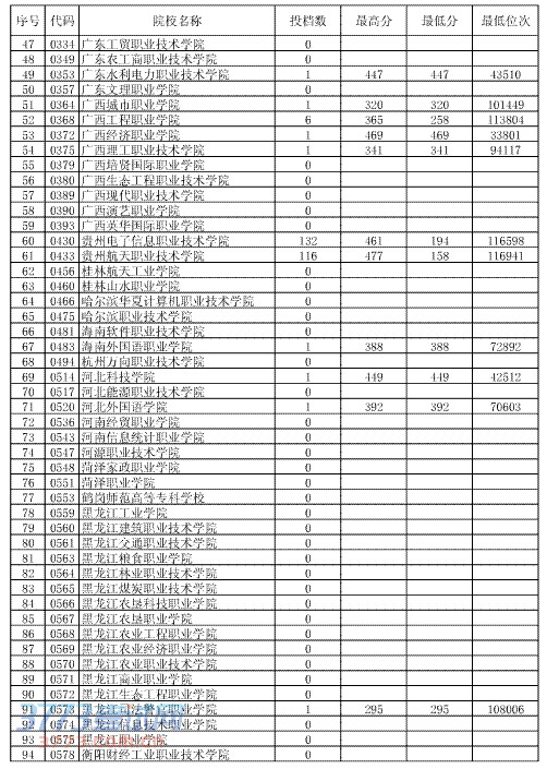 高职(专科)文史类第3次征集志愿投档情况