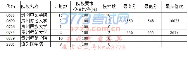贵州省2017年高考地方专项计划文史类征集志愿投档情况(7月18日)