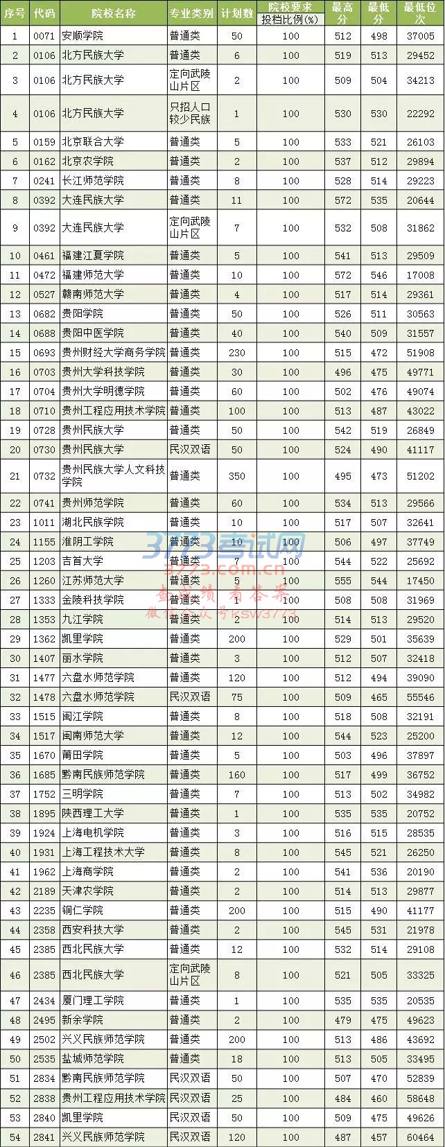 19 0728 贵州民族大学 普通类 50 100 542 519 26849