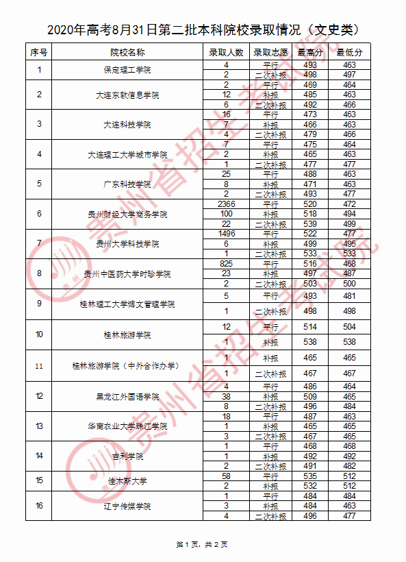 相关文章 2020-8-31·2020年8月31日贵州第二批本科院校录取分数线2020-8-31·2020贵州高考第二批本科第3次补报志愿投档分2020-8-31·2020年8月30日贵州高考二本院校录取分数线2020-8-31·2020贵州高考第二批本科第2次补报志愿投档分2020-8-31·贵州省2020年高考第二批本科补报志愿投档分2020-8-31·2020年8月27日贵州艺术类平行志愿本科院校录2020-8-31·2020年8月27日贵州高考第二批本科院校录取分2020-8-31·2020贵州高考第二批本科院校平行志愿投档分2020-8-31·2020贵州高考二本院校投档分数线情况(文理科2020-8-31·2020年8月25日贵州艺术类本科院校录取分数线 推荐专题 天津 上海 北京 英语四六级查分 浙江音乐学院 云南艺术学院 甘肃省教育考试院 吉林省教育考试院 湖北省教育考试院 河南招生考试信息网 黑龙江省招生考试院 初二会考 中考志愿填报 异地中考 河南高考志愿 重庆高考志愿 西藏高考志愿 贵州高考志愿 云南高考志愿 四川高考志愿 海南高考志愿 广西高考志愿 广东高考志愿 江西高考志愿 武汉大学 四川大学 电子科技大学 西南交通大学 山东 辽宁 吉林 重庆 湖南高考志愿 湖北高考志愿 福建高考志愿 广西艺术学院 新疆艺术学院 浙江高考志愿 上海高考志愿 江苏高考志愿 安徽高考志愿 山东高考志愿 陕西高考志愿 中考分数线 中考录取查询 中考查分网 中考作文网 中考试题答案网 山西高考志愿 宁夏高考志愿 青海高考志愿 甘肃高考志愿 新疆高考志愿 河北高考志愿 天津高考志愿 北京高考志愿 内蒙古高考志愿 吉林高考志愿 辽宁高考志愿 黑龙江高考志愿 福建高职招考 湖南大学 中南大学 山西 综合评价录取 高考专项计划 陕西 河北 河南 华南理工大学 中山大学 西安美术学院 西安音乐学院 湖北 厦门大学 湖南 重庆大学美视电影学院 海南 四川美术学院 浙江大学更多专题 移动站 电脑版 专题 3773考网 闽ICP备08106227号-4 合作QQ: