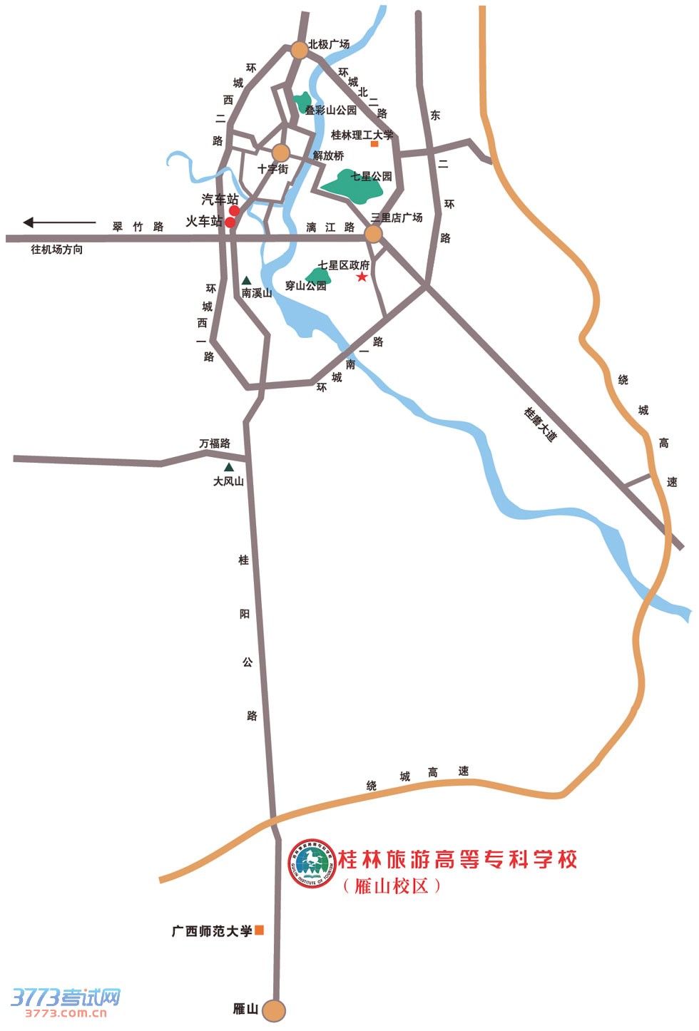 学校地址:广西桂林市雁山区良丰路26号(从市中心至雁山校区全程约20公里。)