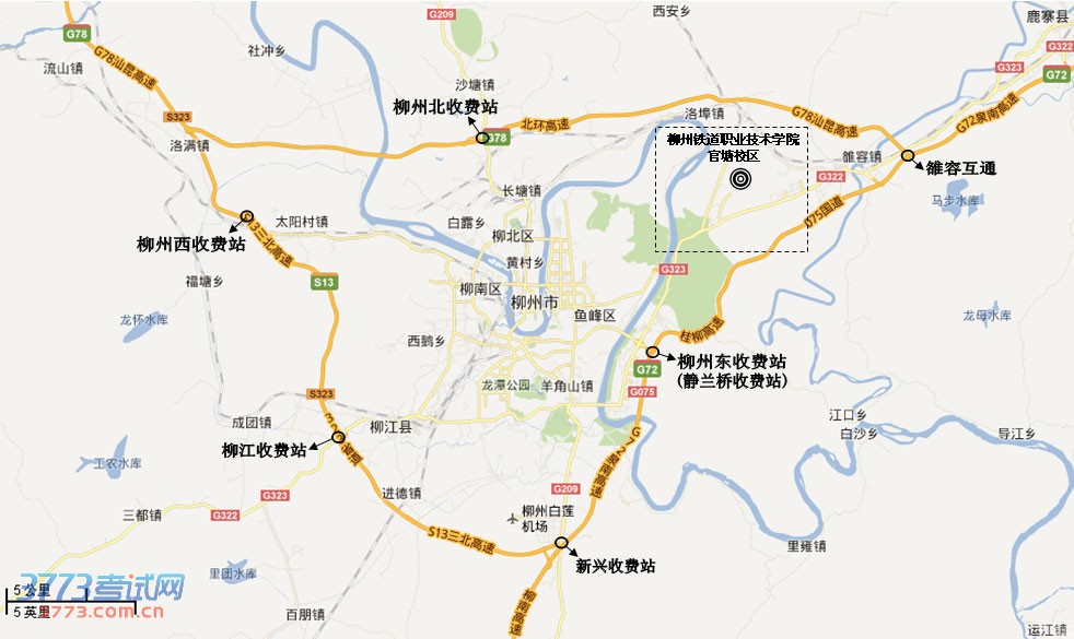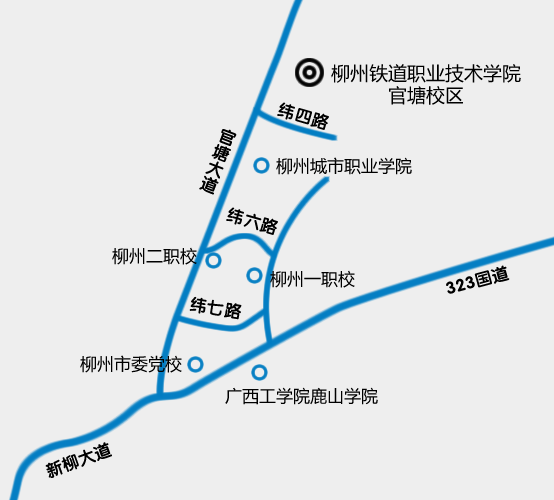 2.行走桂柳高速考生可从雒容收费站,经新柳大道→官塘大道→柳州铁道职业技术学院官塘校区;