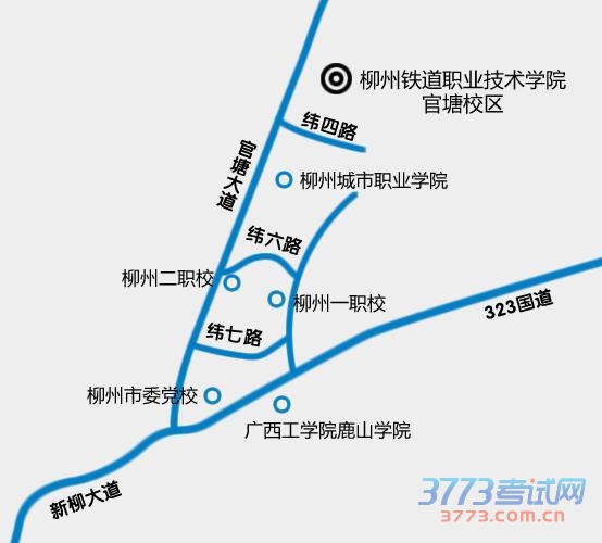 2.行走桂柳高速考生可从雒容收费站,经新柳大道→官塘大道→柳州铁道职业技术学院官塘校区;
