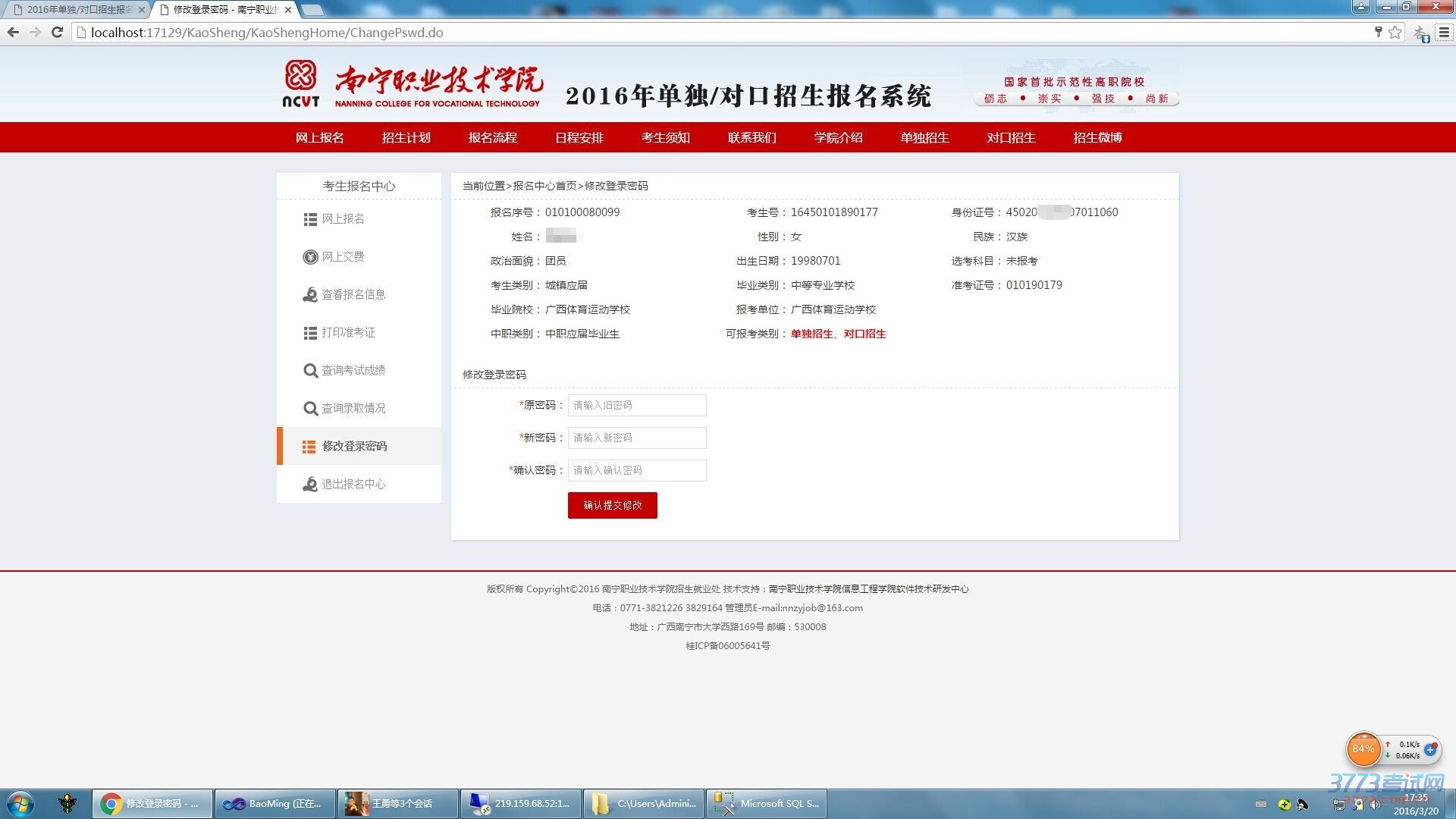 小贴士: 考生可以用高考报名号和身份证号登录报名(前提必须报名今年的高考),初始密码为身份证后6位。登录后建议修改密码(新密码要记住啊)