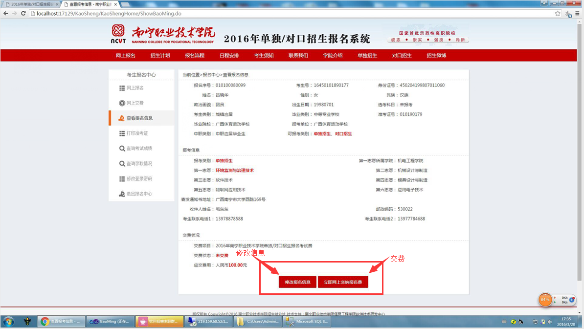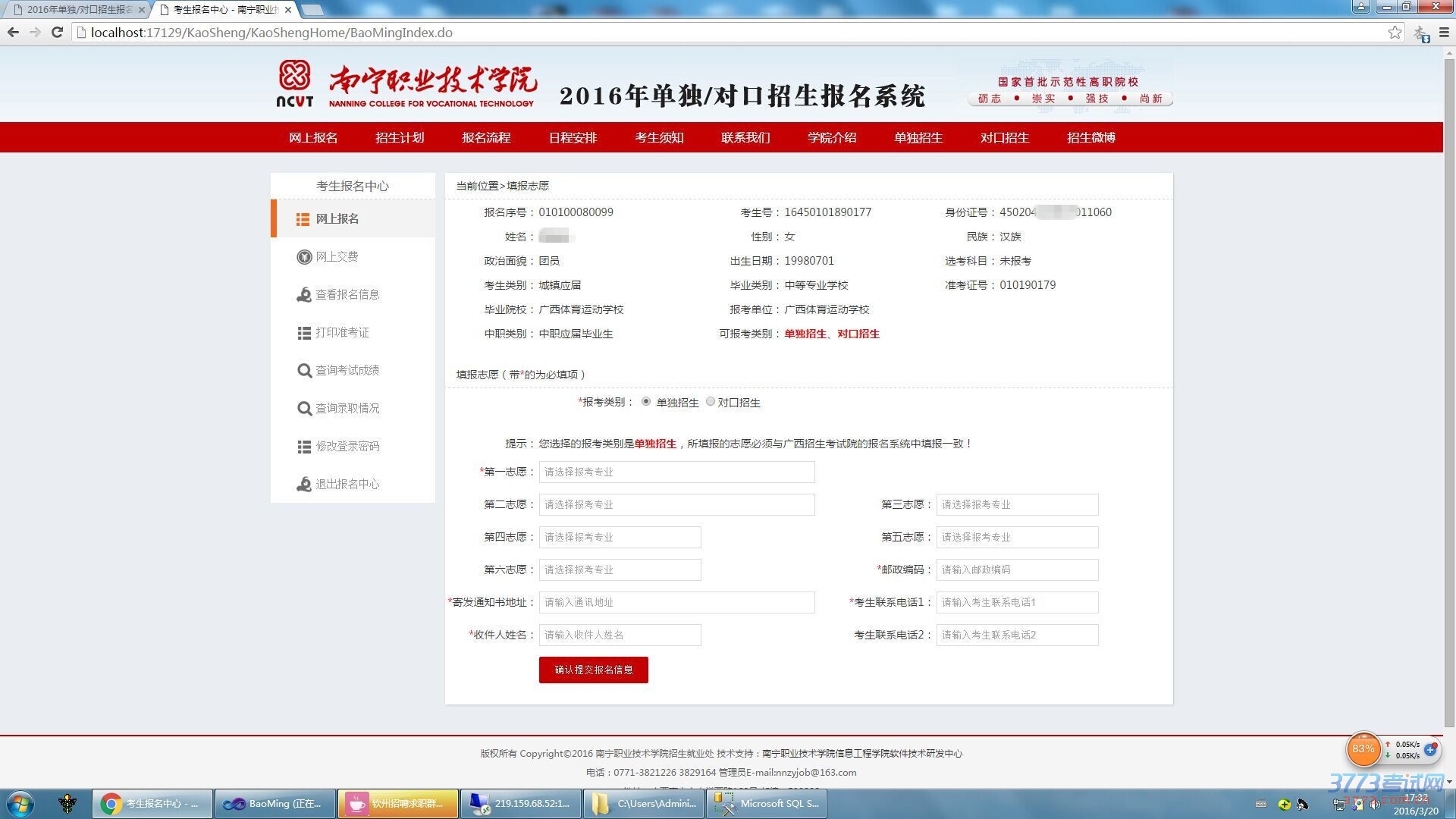 填报志愿 进入报名系统,先看一下系统显示你的高考报名信息是否有误,如无误,你就可以选择报名类型后,填报提交志愿信息。