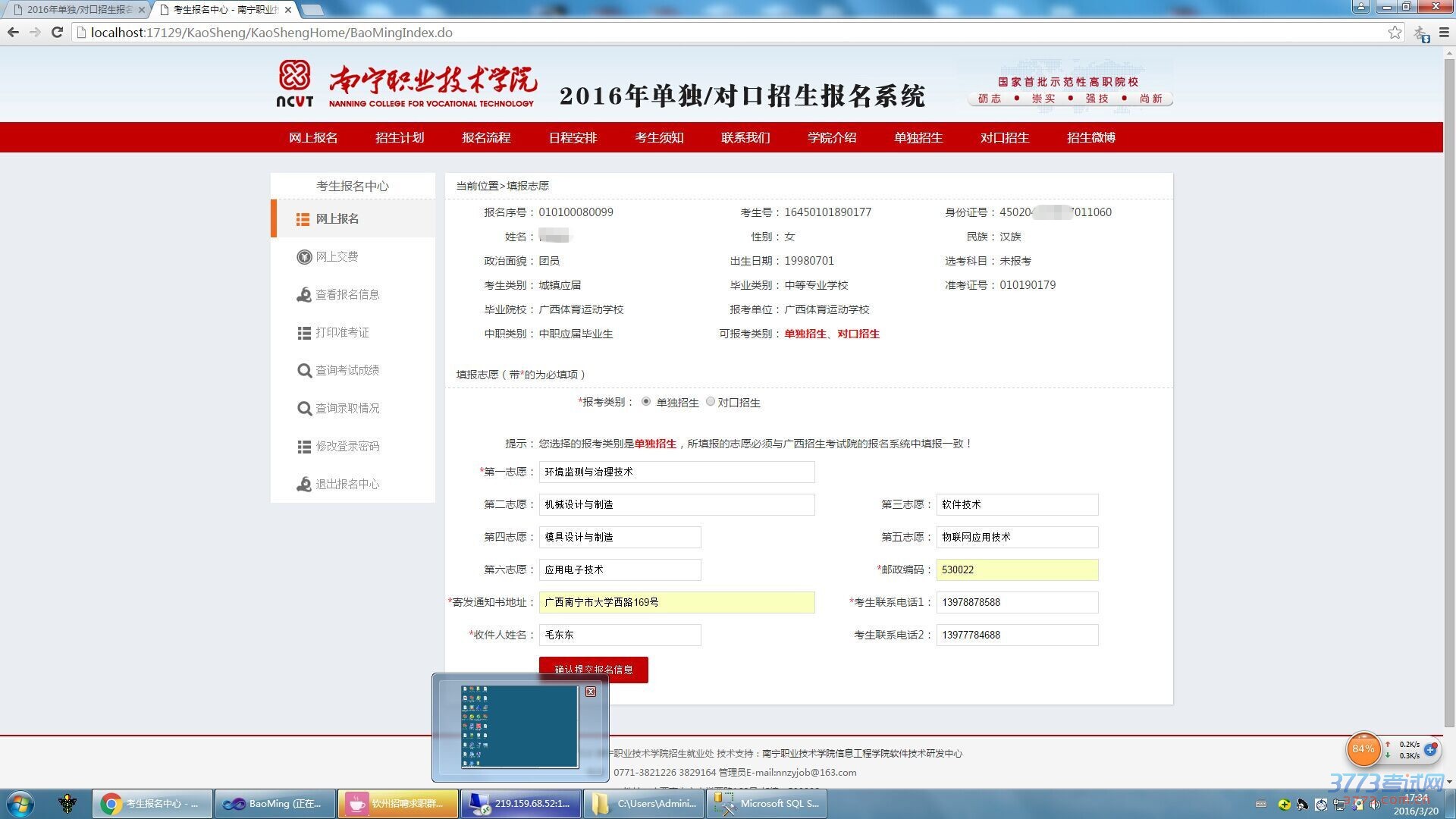 1.考生凭密码函登陆广西招生考试院志愿填报系统填报志愿(第一志愿报南职)