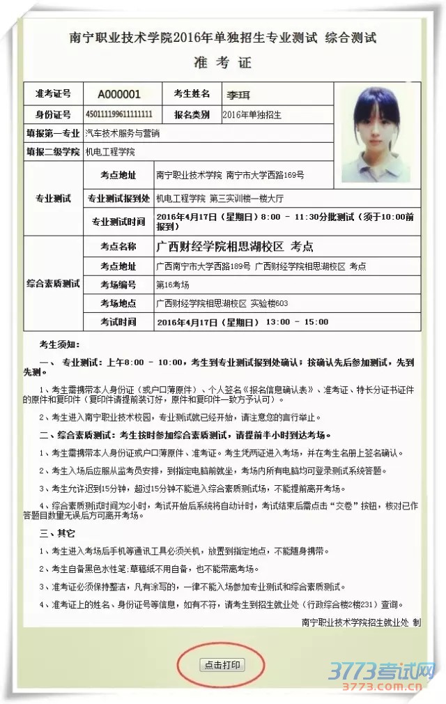 第三:到校确认和参加专业潜能测试、综合测试(4月17日)