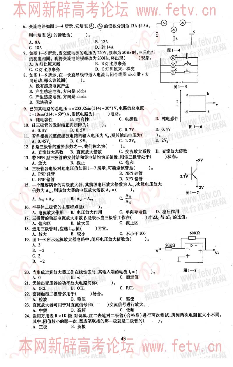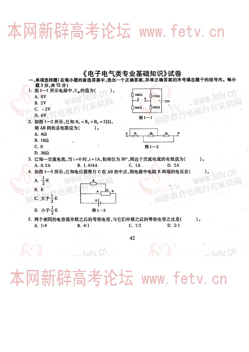 福建省2005年高职单招试题及答案-电子电气类专业基础知识