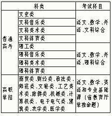高职单招只允许普通中专、职业中专、职业高中、成人中专、技工学校的应届、往届毕业生报考。报考类别有13类(见附表),考试科目不同于普通高考,是省单独组织命题的语文、数学、英语、专业基础知识。