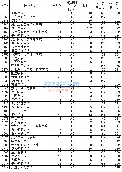 8 460 贵州师范大学求是学院 160 102 164 345 314