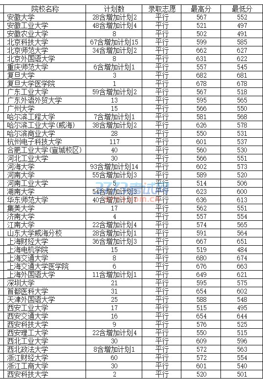 序号 院校名称 计划数 录取志愿 最高分 最低分