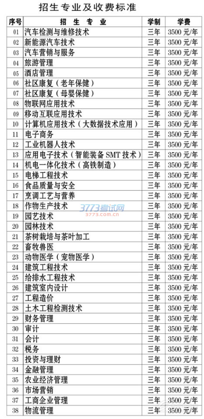 二、招生专业及收费标准