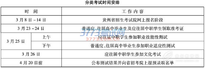 凡符合分类考试招生条件的考生,须于2017年3月8日9:00至14日17:00登录贵州省招生考试院网站报名。