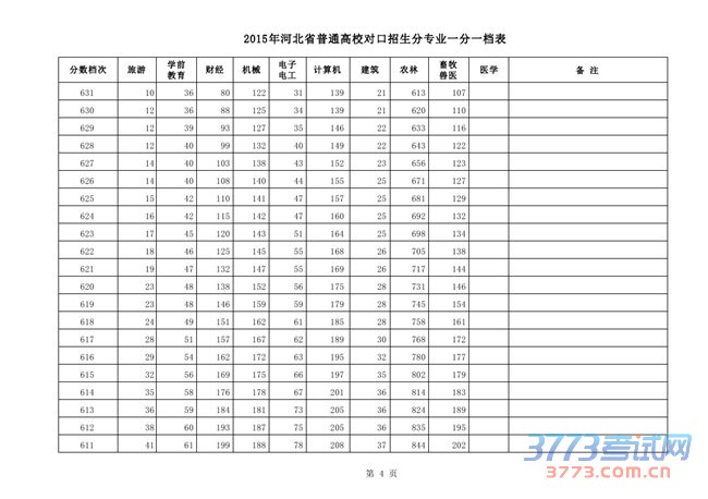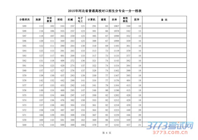 2015年河北省普通高校招生对口招生分专业一分一档表