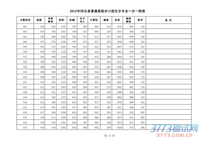 2015年河北省普通高校招生对口招生分专业一分一档表
