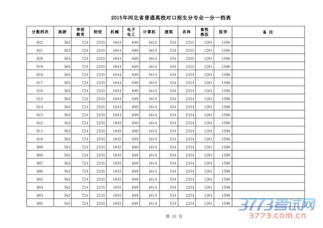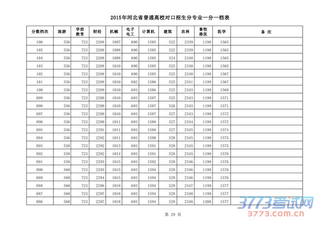 [组图]2015河北高考对口招生分专业一分一档表