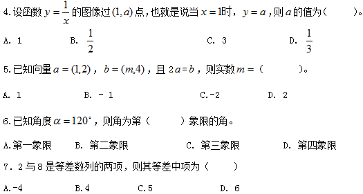 一、选择题:(本大题共7个小题,每小题5分,共计35分)在每小题给出的四个备选项中只有一项是符合题目要求的,请将其选出。未选,错选或多选均不得分。