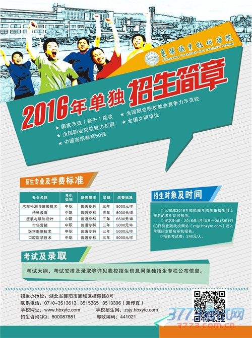 襄阳职业技术学院2016年单独招生简章(电子版)