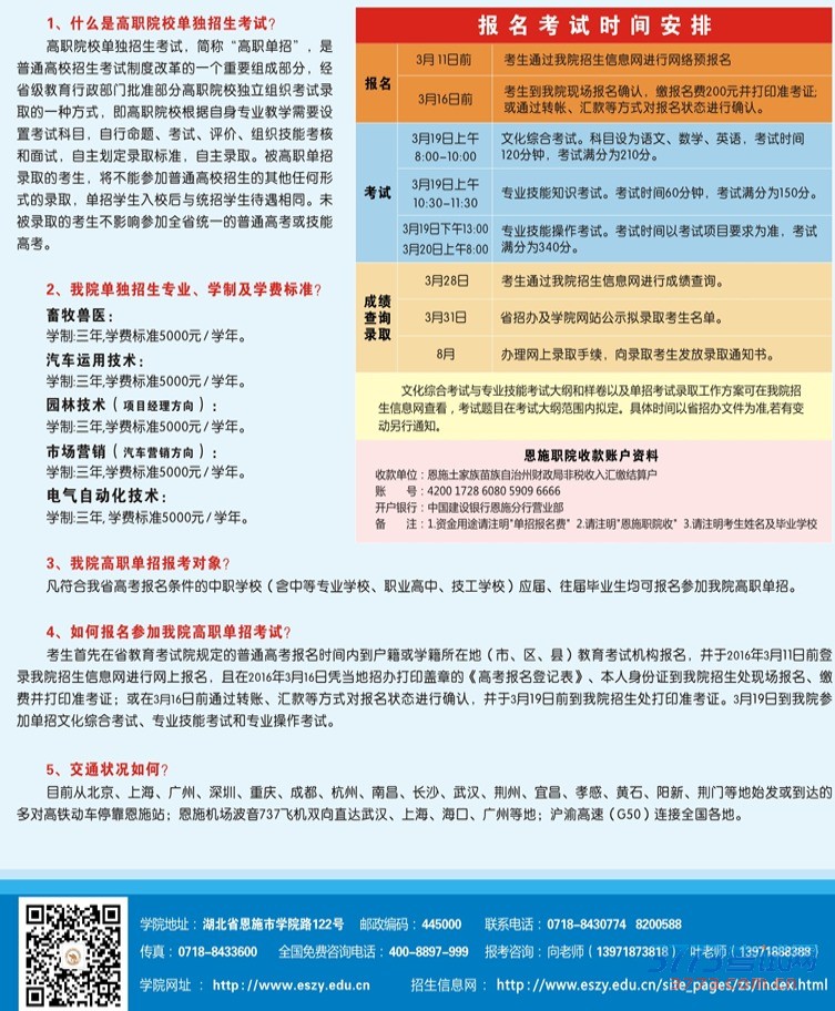 [图文]恩施职业技术学院2016年高职单招简章