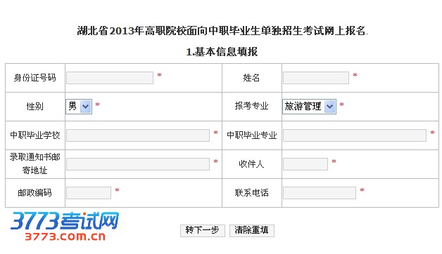 湖北省2013年高职院校面向中职毕业生单独招生考试网上报名
