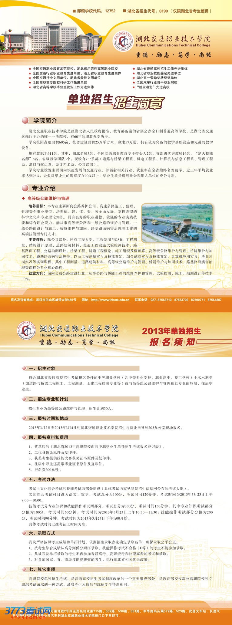 [图文]2013年湖北交通职业技术学院单独招生简章
