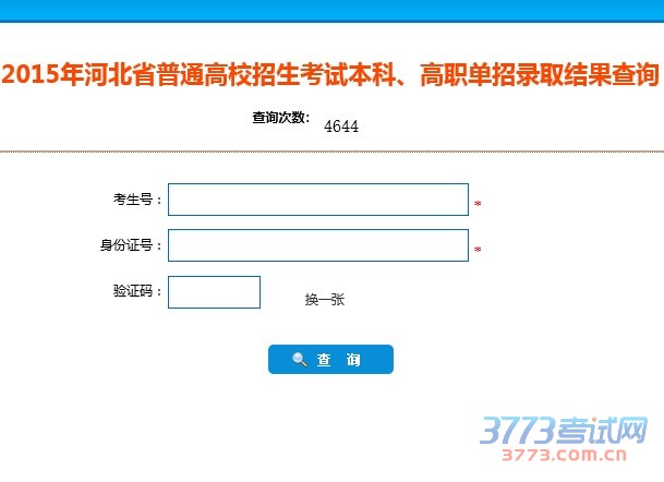 2015年河北省普通高校招生考试本科、高职单招录取结果查询 查询次数: