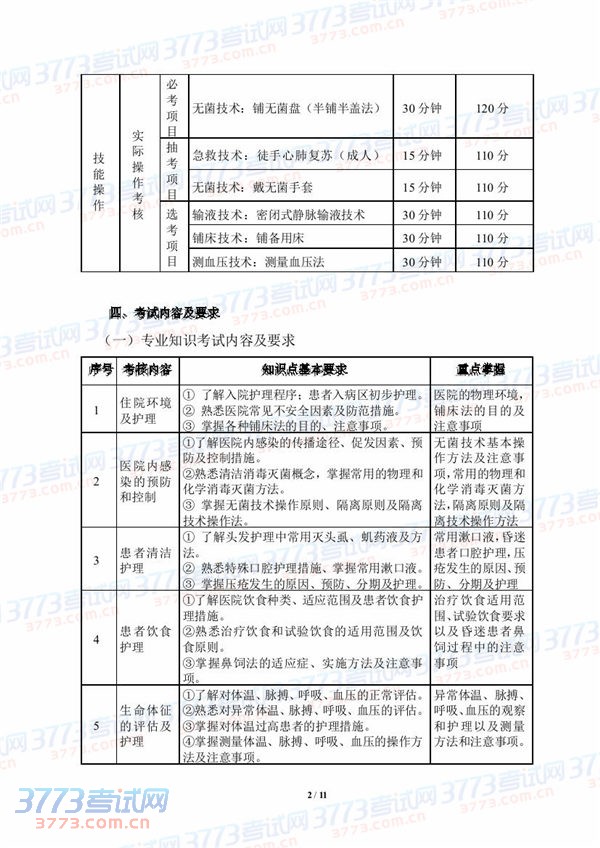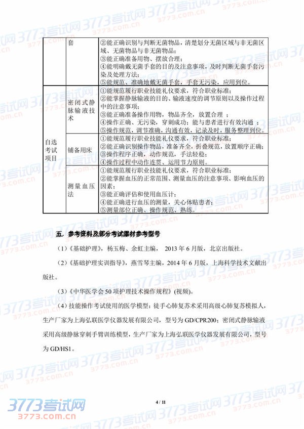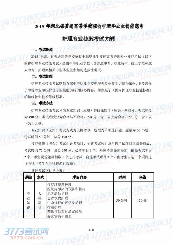[组图]2015湖北技能高考护理专业技能考试大纲