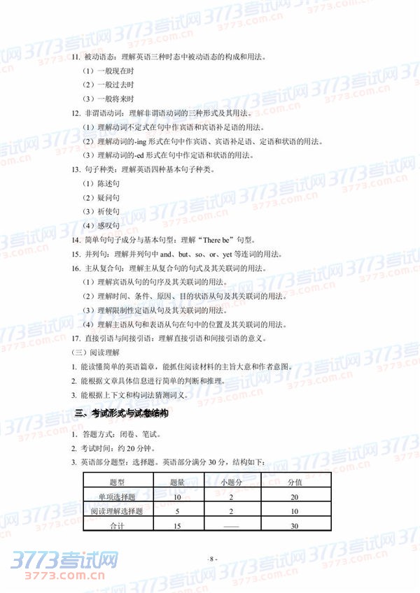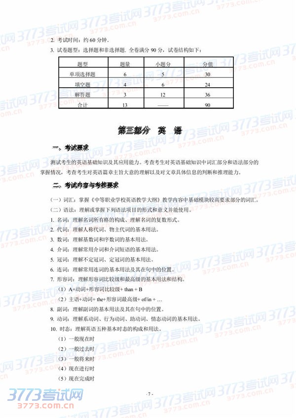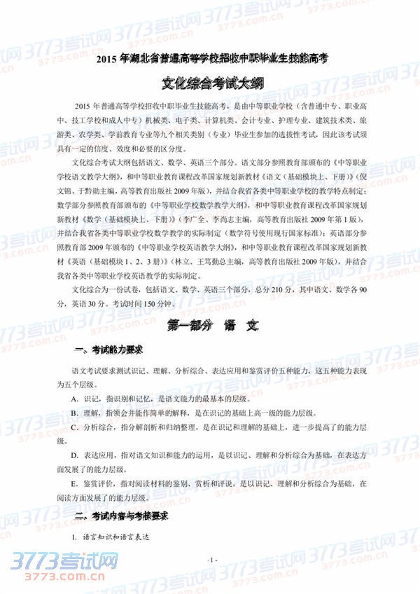 [组图]2015湖北技能高考文化综合考试大纲