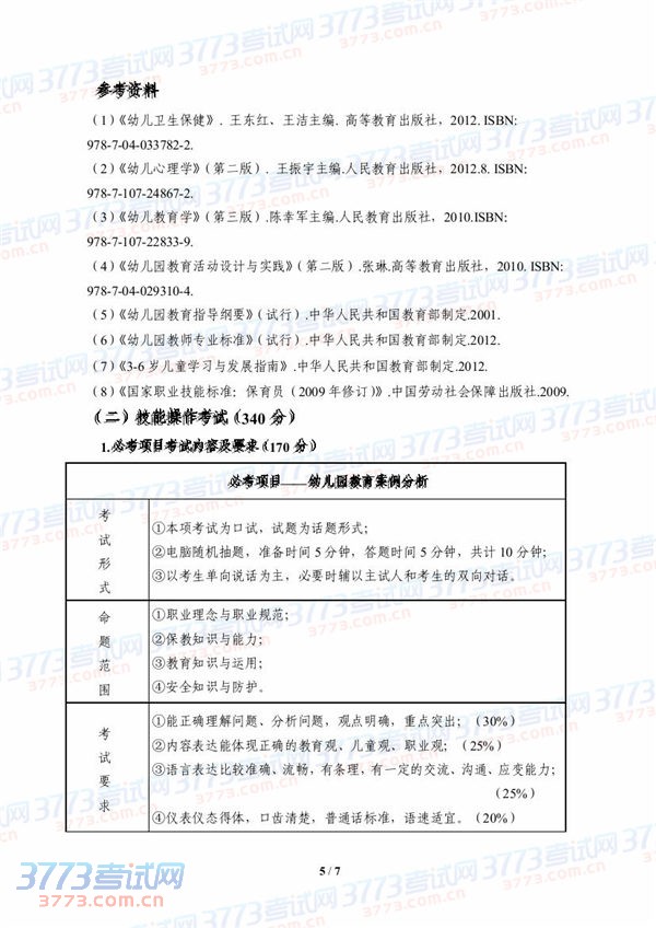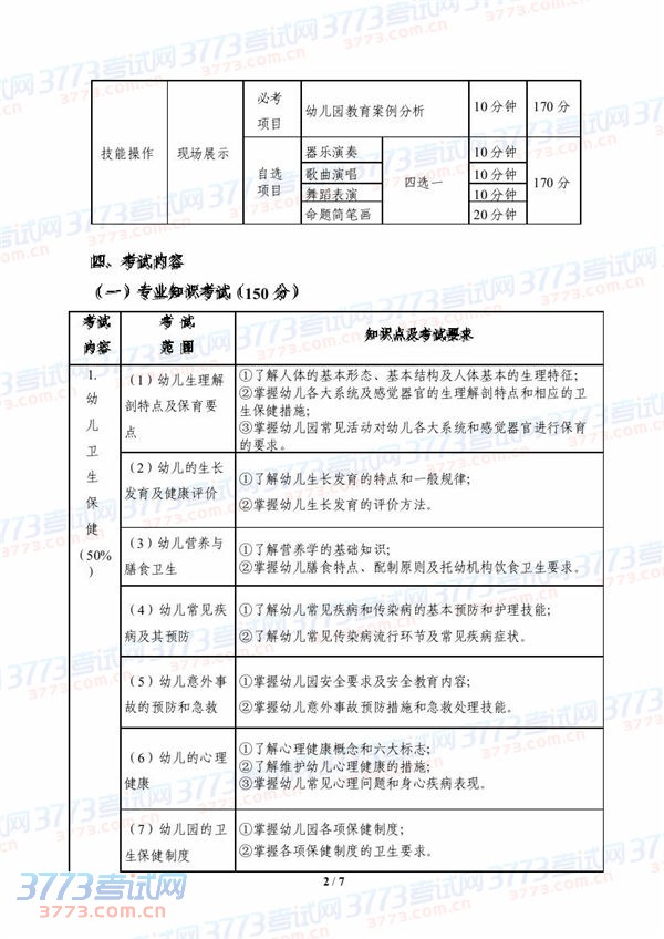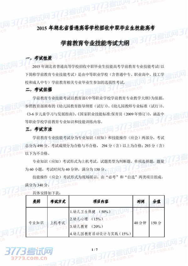 [组图]2015湖北技能高考学前教育专业技能考试大纲
