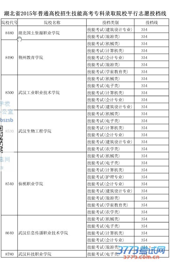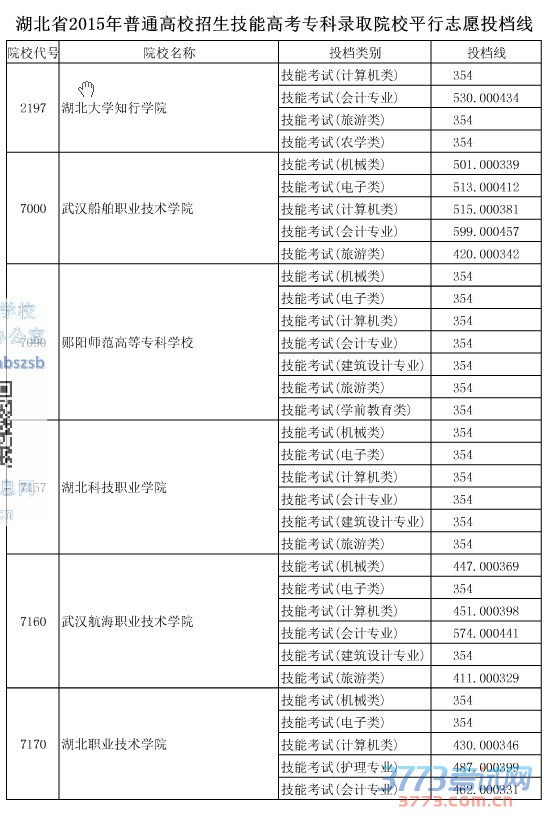 [组图]2015湖北技能高考专科录取院校投档分数线