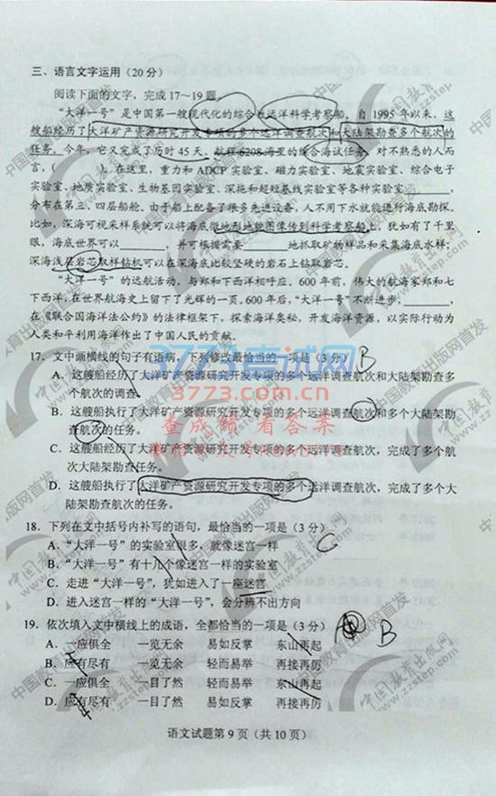 3773考试网高考河北高考语文正文