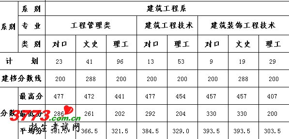 石家庄工商职业学院2010年建筑工程经济贸易系专业录取分数线