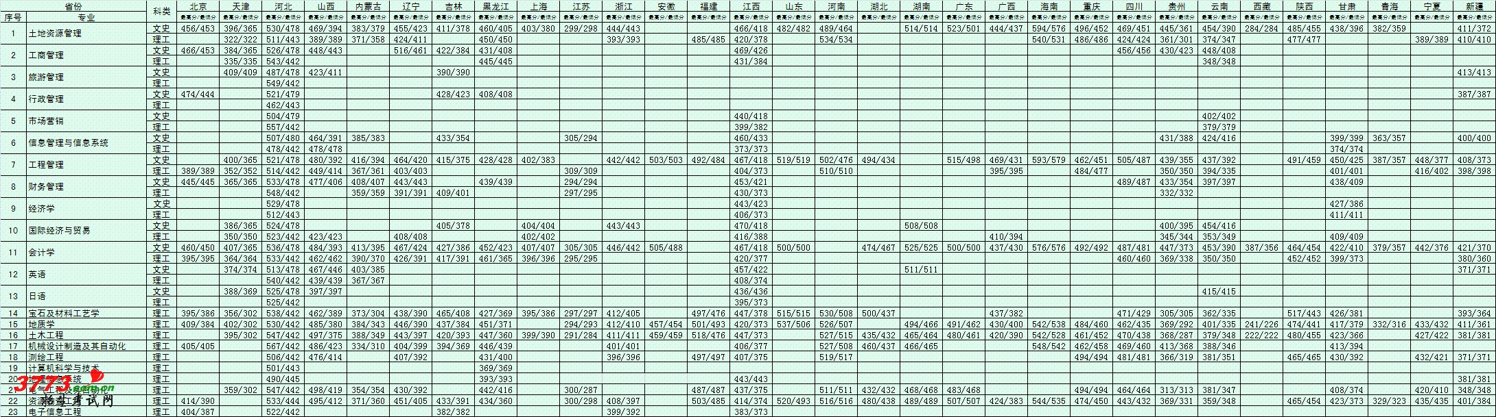 [图文]中国地质大学长城学院2011年专业录取分数线