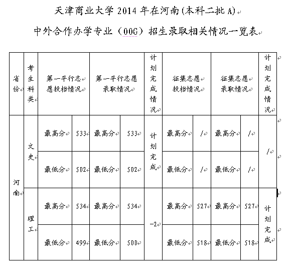 [图文]2014天津商业大学河南二本中外合作录取分数线
