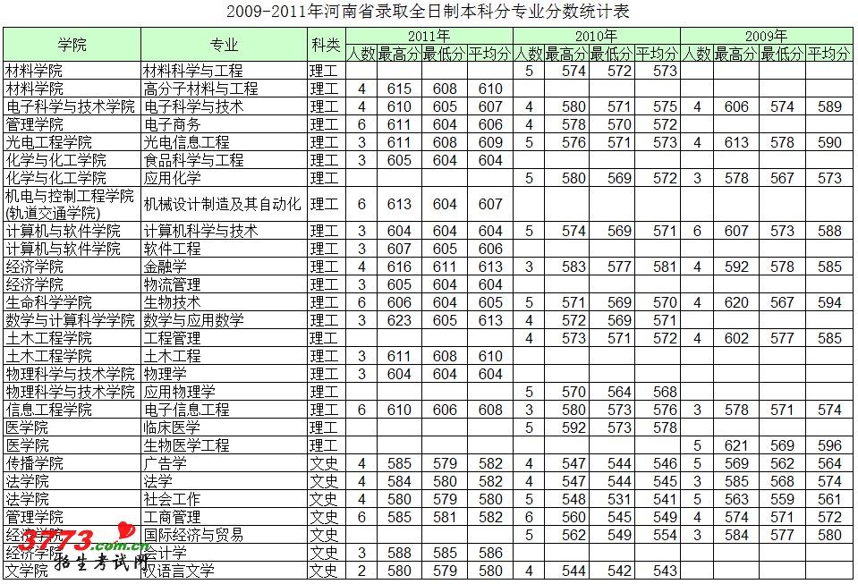 [图文]深圳大学2009年2010年2011年河南录取分数线