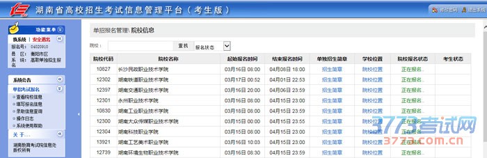 第三步:点击左侧“填写报名信息”,考生可在报考院校下拉菜单中选择报考12739 湖南环境生物职业技术学院