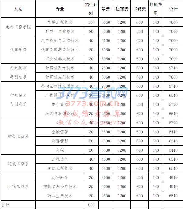 系别专业招生计划学费住宿费书籍费其他费用合计