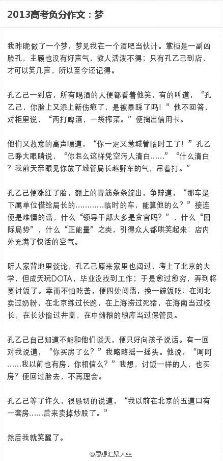今日最佳帖强烈推荐!【2013高考! 负分! 作文:《梦》】