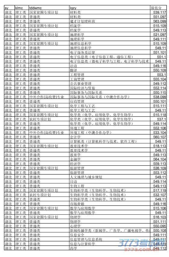 湖北大学2014年分省分专业录取分数统计(湖北省)