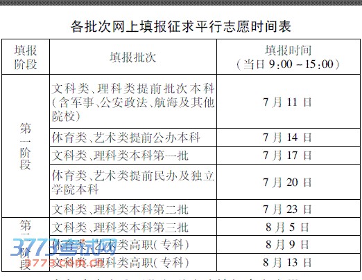 段各批次省录取最低控制分数线(仅限第一阶段填报批次)、填报志愿资格线后,在省教育考试院专设的志愿填报网站,分两个阶段填报志愿:第一阶段填报志愿于6月27日至7月2日(截止到17: