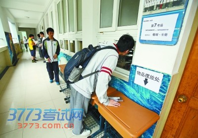 在每个考场的门上,第几考场、参考学生的学号、选测科目等信息已经张贴好。门外还有供考生放置与考试无关物品的存放点。学校相关负责人告诉记者,每个教室还为考生准备了2B铅笔,削得整整齐齐,防止考试过程中有人断了笔芯。考场内还有“特别提醒”,提示考生“开考后严禁携带各种通讯工具和电子储存记忆录放设备,否则将一律按违规处理”。