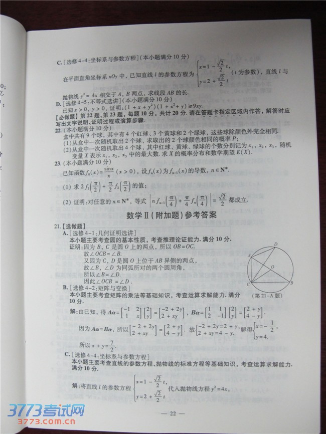 [组图]2014江苏高考数学试题及答案发布