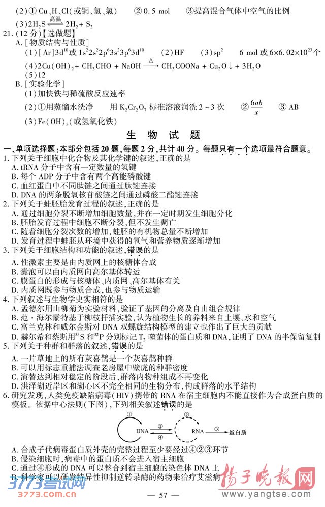 [组图]2014江苏高考化学试题及答案发布