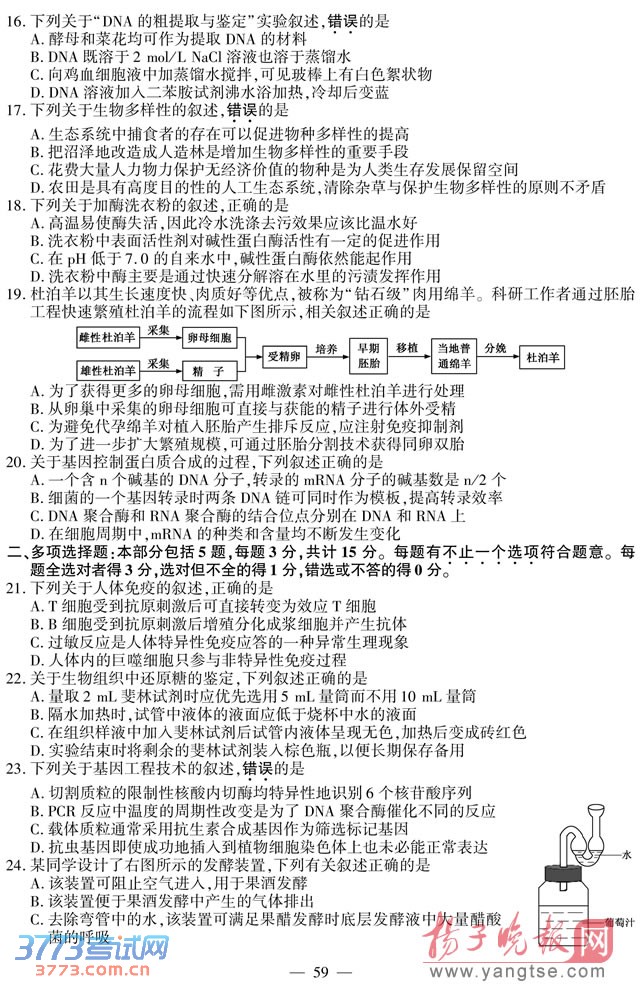[组图]2014江苏高考生物试题及答案发布