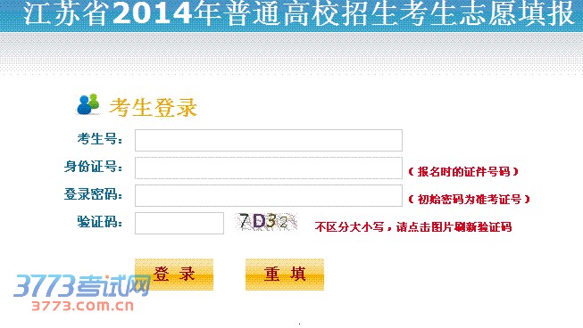 江苏省2014年普通高校招生考生志愿填报入口:http://gkzy.jseea.cn/