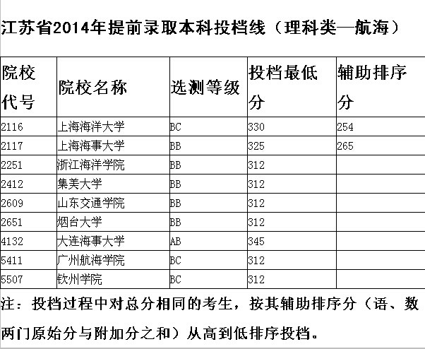 | 江苏省2014年提前录取本科投档线(理科类—军事国防) | ||||||